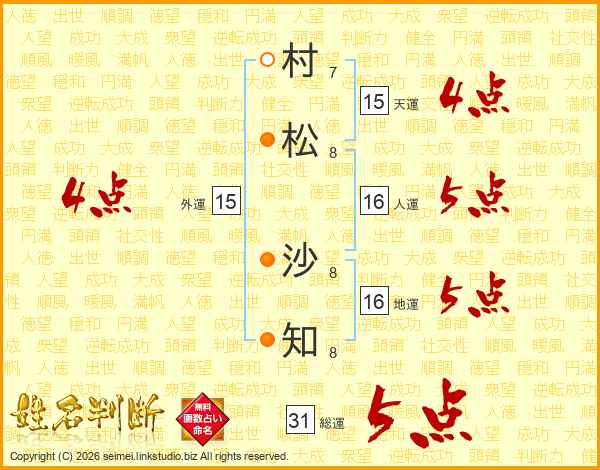 村松沙知さんの天運は15画の4点!