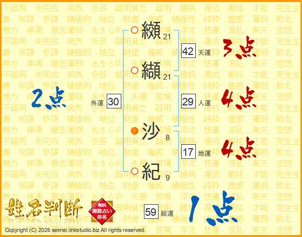 纐纈沙紀さんの総運は59画の1点!