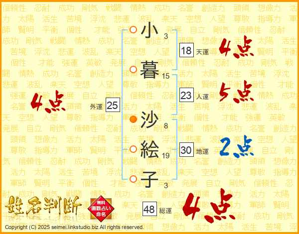 小暮沙絵子さんの天運は18画の4点!