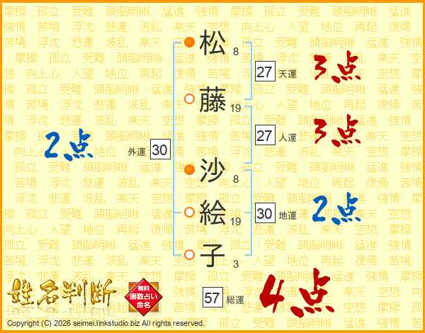 松(8画)藤(19画) 沙(8画)絵(19画)子(3画)