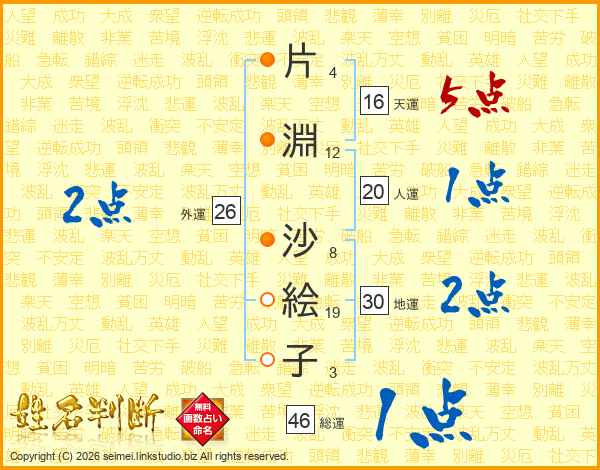 片淵沙絵子さんの総運は46画の1点!
