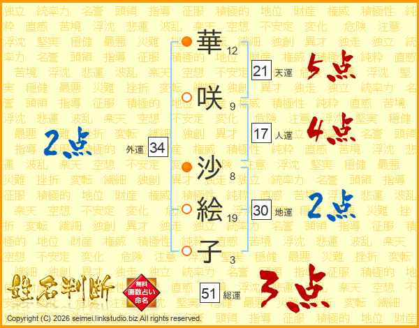 華咲沙絵子さんの総運は51画の3点!