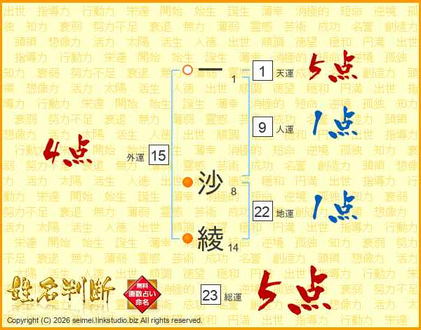 一沙綾さんの外運は15画の4点!
