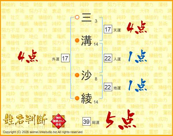 三溝沙綾さんの外運は17画の4点!