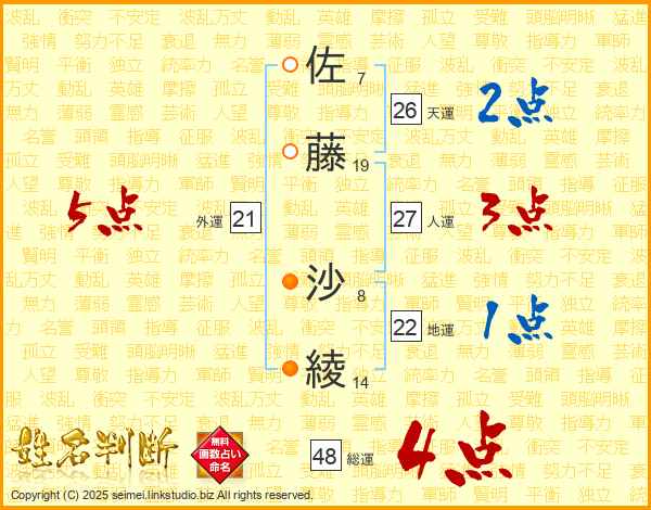 佐藤沙綾さんの総運は48画の4点!