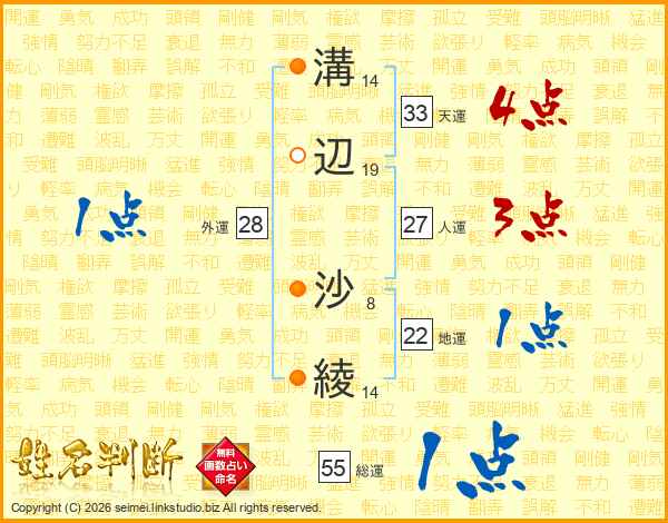 溝(14画)辺(19画) 沙(8画)綾(14画)