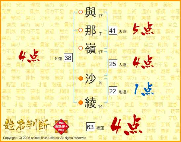 與那嶺沙綾さんの天運は41画の5点!