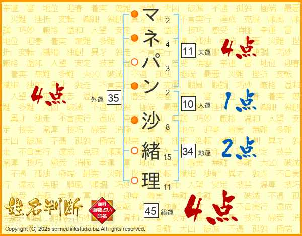 マネパン沙緒理さんの総運は45画の4点!