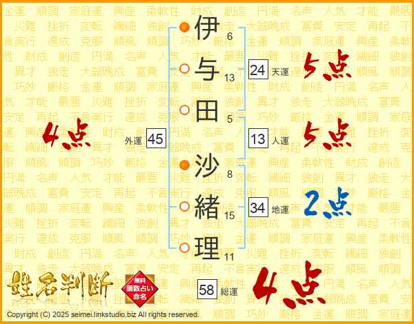 伊与田沙緒理さんの総運は58画の4点!