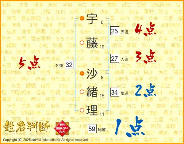 宇藤沙緒理さんの天運は25画の4点!