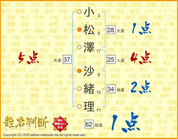 小松澤沙緒理さんの人運は25画の4点!