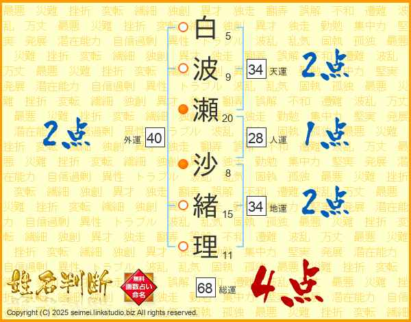 白波瀬沙緒理さんの総運は68画の4点!