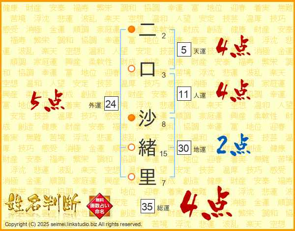 二口沙緒里さんの総運は35画の4点!