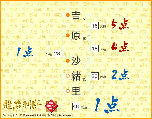 吉原沙緒里さんの総運は46画の1点!
