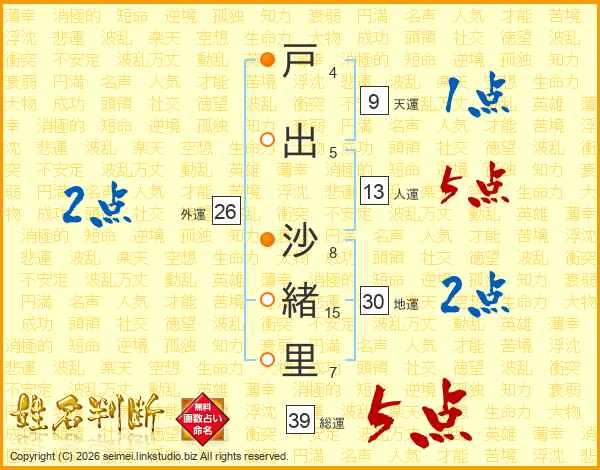 戸出沙緒里さんの総運は39画の5点!