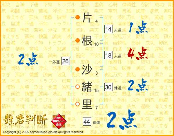 片根沙緒里さんの総運は44画の2点!