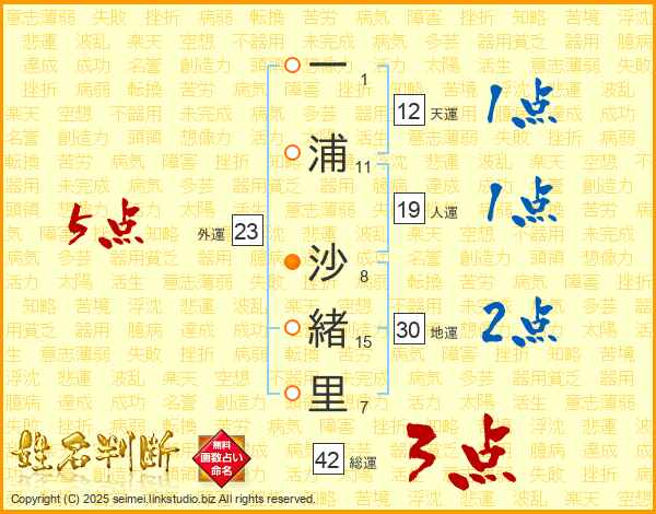 一浦沙緒里さんの総運は42画の3点!