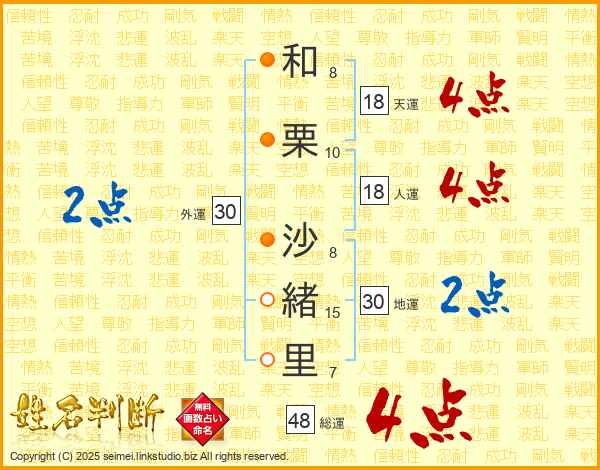 和栗沙緒里さんの総運は48画の4点!