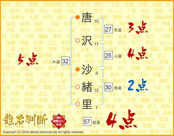 唐沢沙緒里さんの外運は32画の5点!