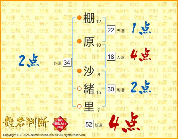 棚原沙緒里さんの総運は52画の4点!