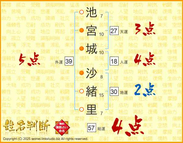 池宮城沙緒里さんの外運は39画の5点!