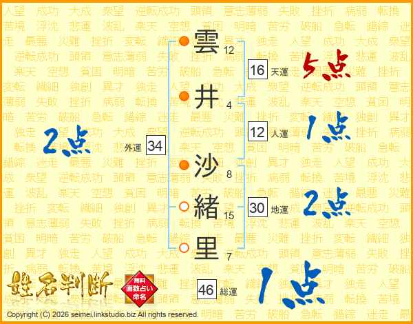 雲井沙緒里さんの総運は46画の1点!