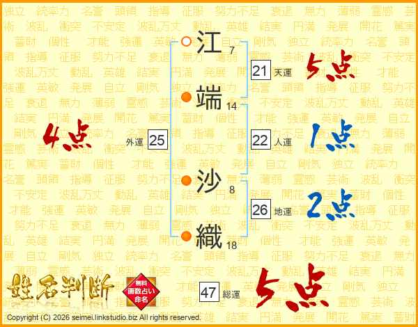 江端沙織さんの総運は47画の5点!
