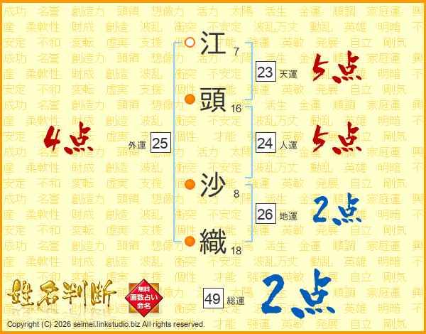 江頭沙織さんの総運は49画の2点!