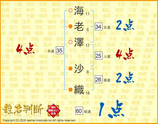 海老澤沙織さんの外運は35画の4点!