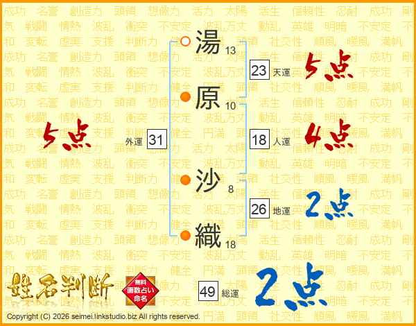 湯原沙織さんの総運は49画の2点!