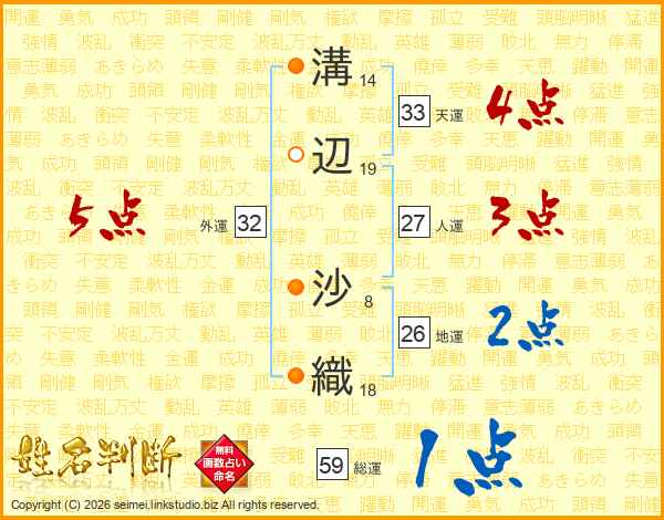 溝(14画)辺(19画) 沙(8画)織(18画)