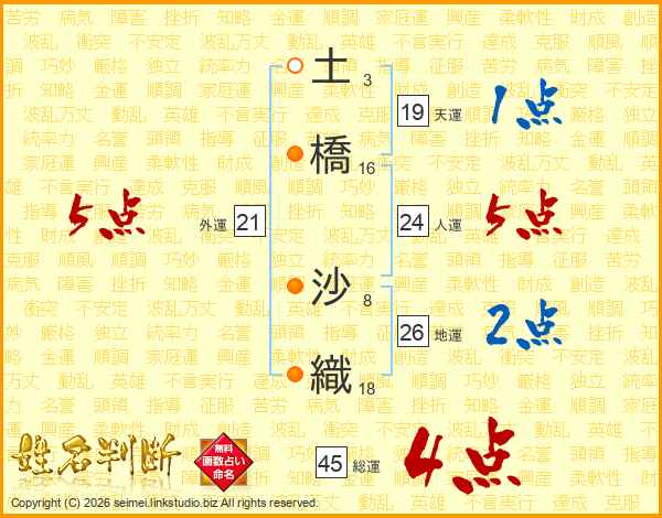 土橋沙織さんの総運は45画の4点!