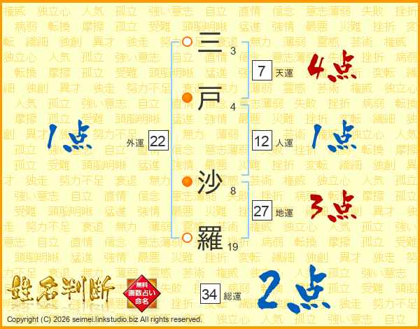 三戸沙羅さんの総運は34画の2点!