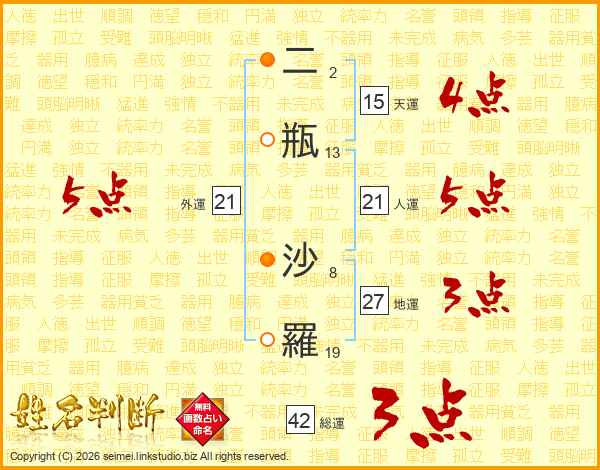 二瓶沙羅さんの外運は21画の5点!
