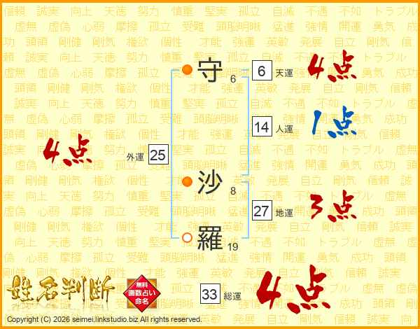 守沙羅さんの総運は33画の4点!