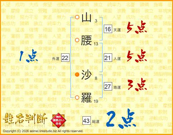 山腰沙羅さんの総運は43画の2点!