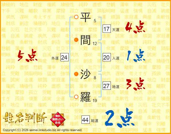 平間沙羅さんの外運は24画の5点!