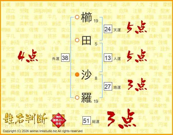 櫛田沙羅さんの外運は38画の4点!