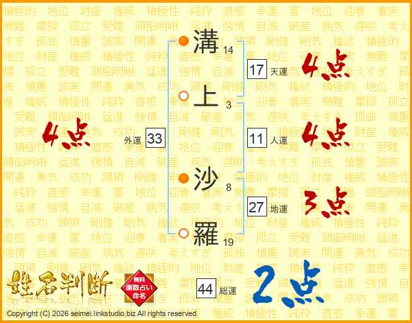 溝上沙羅さんの外運は33画の4点!
