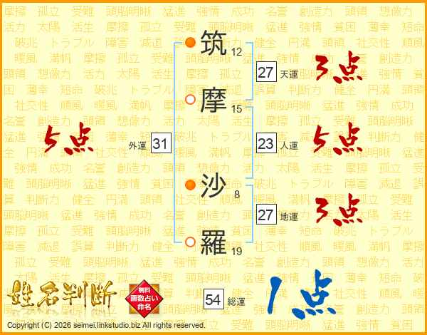 筑摩沙羅さんの総運は54画の1点!