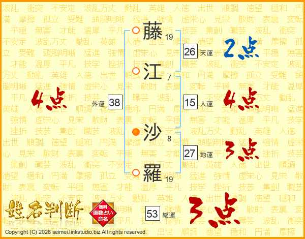 藤(19画)江(7画) 沙(8画)羅(19画)