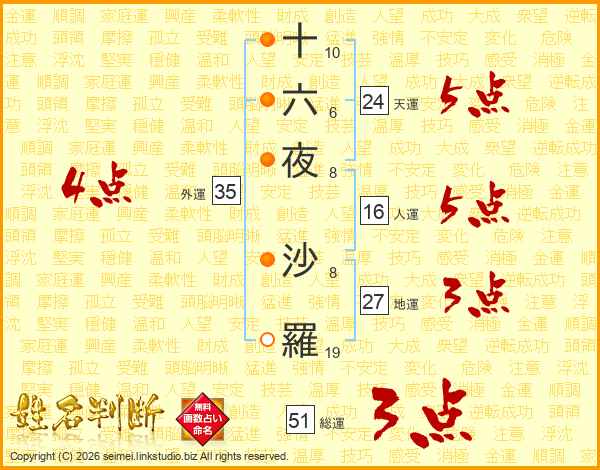 十六夜沙羅さんの外運は35画の4点!
