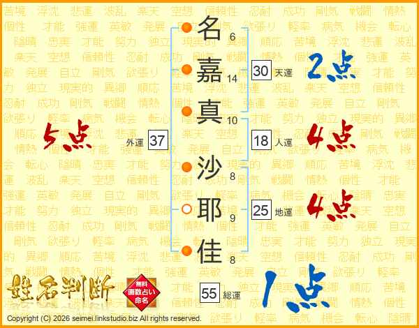 名嘉真沙耶佳さんの外運は37画の5点!