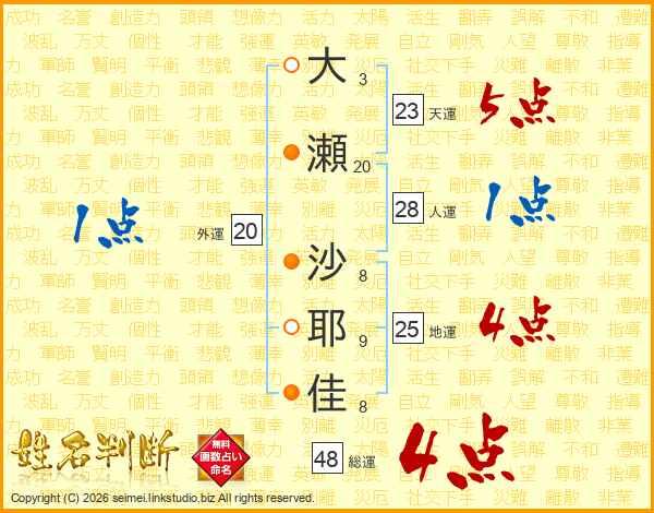 大瀬沙耶佳さんの総運は48画の4点!