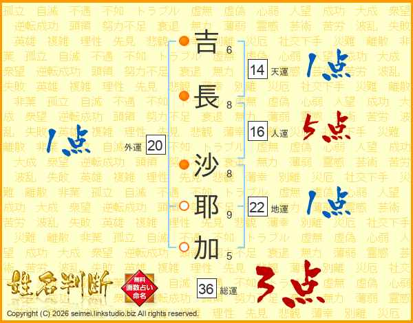 吉長沙耶加さんの天運は14画の1点!