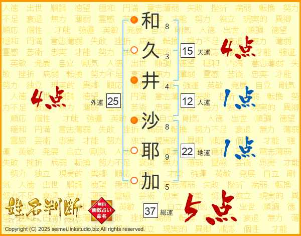 和久井沙耶加さんの総運は37画の5点!