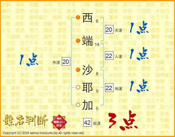 西端沙耶加さんの総運は42画の3点!
