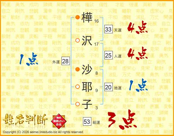 樺沢沙耶子さんの天運は33画の4点!