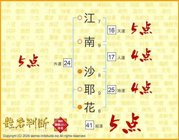 江南沙耶花さんの総運は41画の5点!