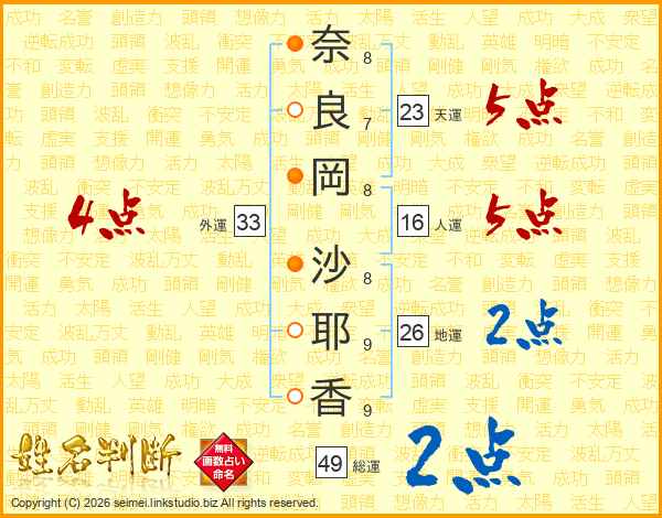 奈良岡沙耶香さんの外運は33画の4点!